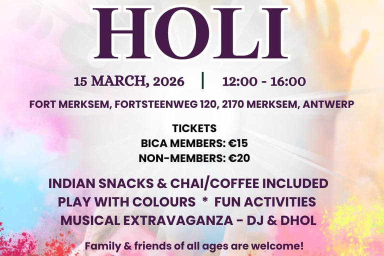 ✨ What to expect: Organic colors, tasty Indian snacks and chai/coffee, DJ and dhol, and family-friendly activities.